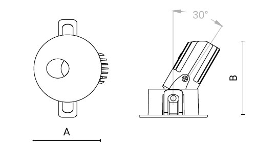 asimmetrica Imax=30° | 8W | 230lm | 3000K | 90 | ON/OFF | 75mm | 80mm |