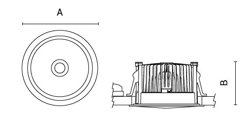 Codice | Ottica | Watt | Lumen | CCT | CRI | Controllo | A | B | C | |