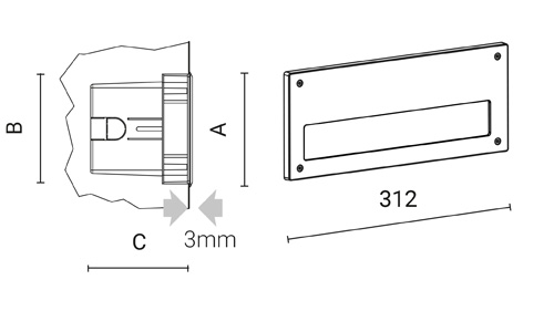 Codice | Ottica | Watt | Lumen | CCT | CRI | Controllo | A | B | C | |