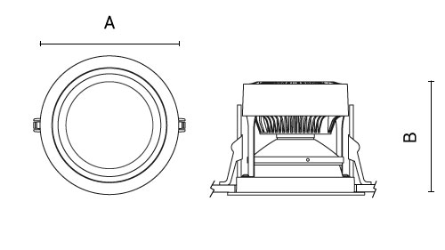 Codice | Ottica | Watt | Lumen | CCT | CRI | Controllo | A | B | C | |