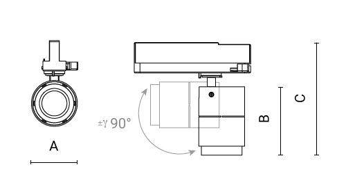 Codice | Ottica | Watt | Lumen | CCT | CRI | Controllo | A | B | C | |